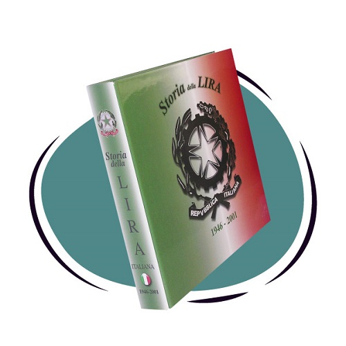 Album Lira Tipologica con custodia completo di inserti (11 pagine). Album per raccogliere un esemplare per tipo di tutte le monete coniate per la circolazione della Repubblica Italiana emesse dal 1946 al 2001 dalla Zecca di Stato. Le schede a colori con informazioni storiche relative a ogni singola moneta e moltissimi dettagli tecnici, rendono questa collezione interessante anche da un profilo editoriale. Copertina in plastica stampata in argento, completo di custodia, inserti in cristal rigido HHt taschine con patella fustellata. Formato 23 x 26.5 cm.