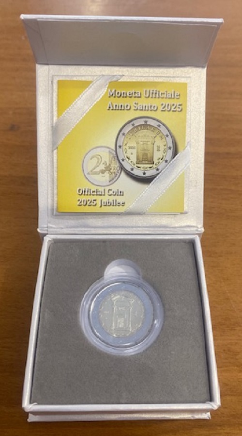2 euro Italia 2025 dedicato al Giubileo confezionato in astuccio