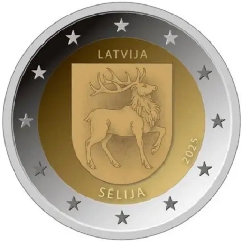 Moneta da 2 euro Lettonia 2025 dedicata alla regione Selonia